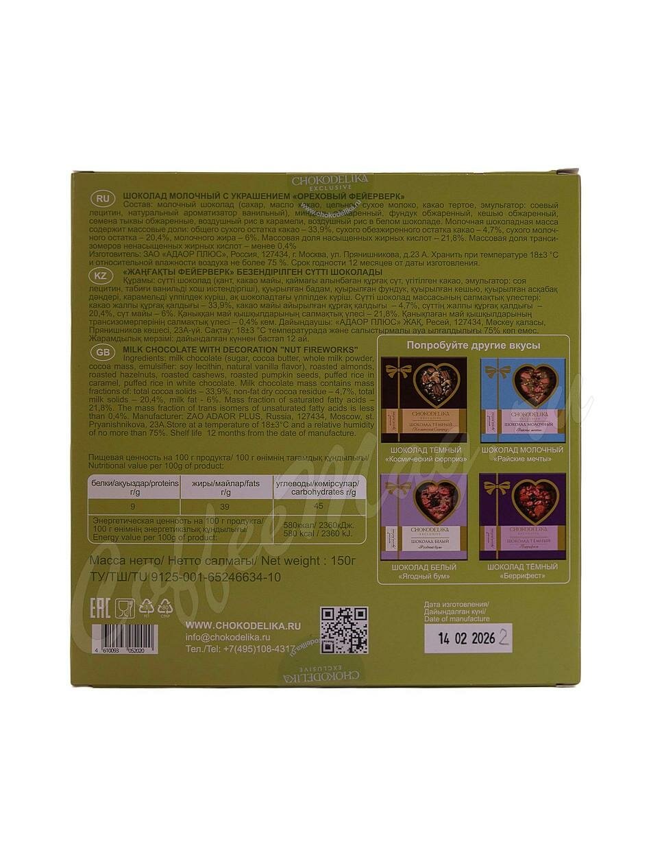 Сладости>Chokodelika>Chokodelika Шоколад молочный "Ореховый фейерверк" 150 г коробка с сердцем