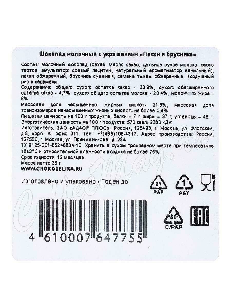 Chokodelika Шоколад молочный с украшением Пекан и брусника 35 г