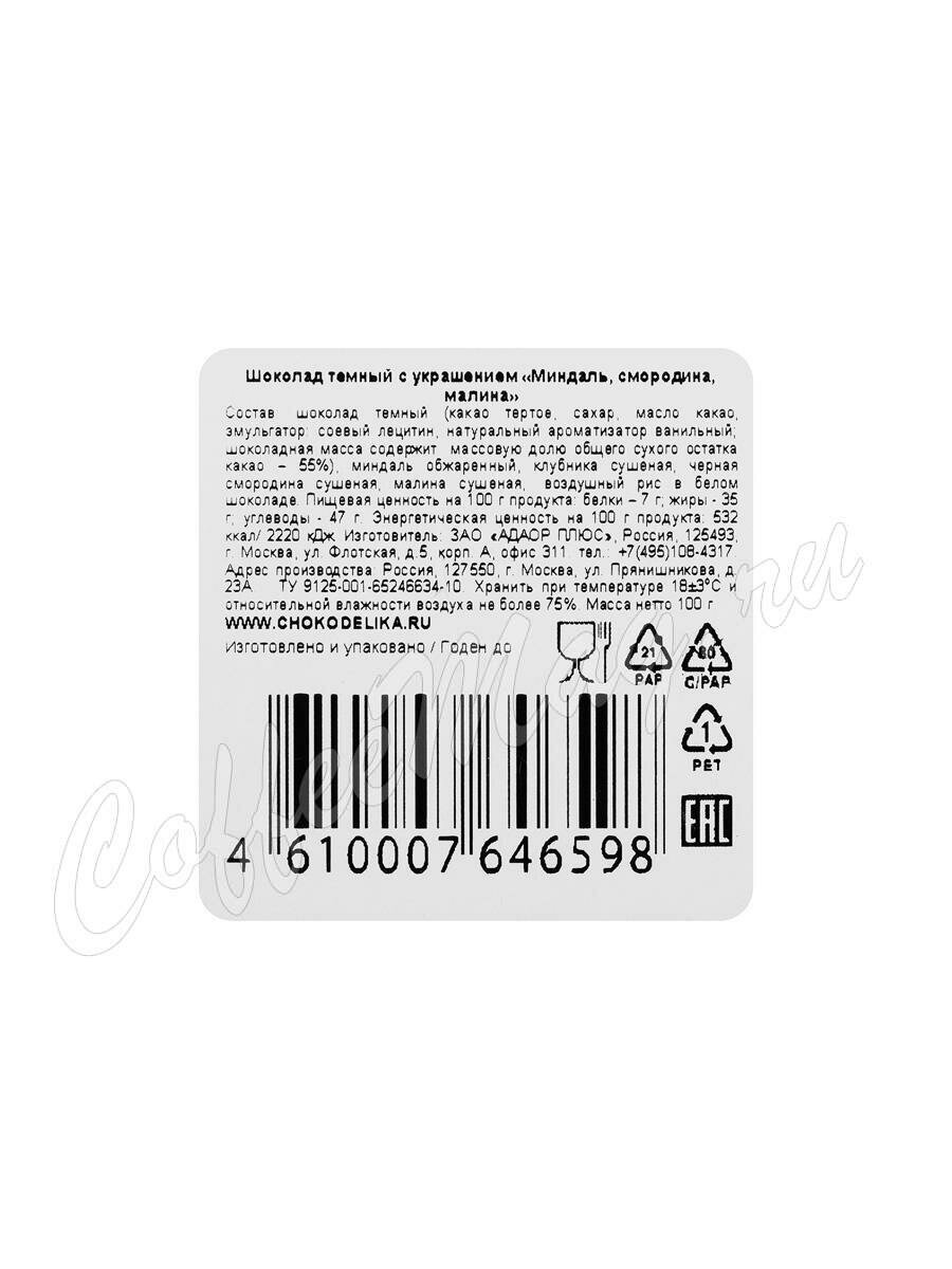 Chokodelika Шоколад темный с украшением "Миндаль, смородина, малина" 100 г