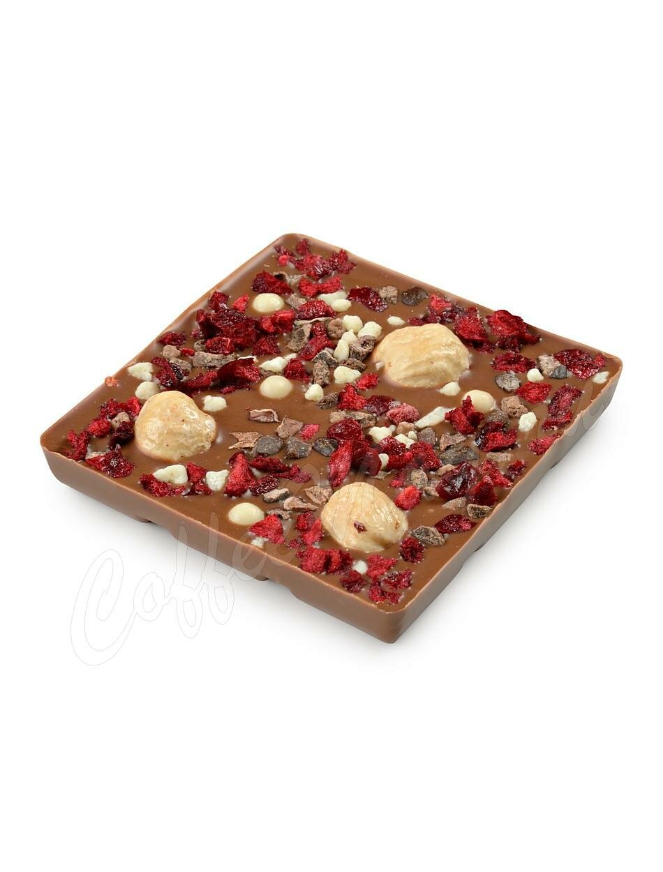 Шоколад молочный с фундуком и вишней - это прекрасное сочетание вкусов и текстур. Нежный молочный шоколад дополняется хрустящими орешками фундука и кисловатыми вишенками, создавая неповторимый букет. Украшение придает шоколаду изысканный и элегантный вид, а молочная основа делает его еще более сливочным и вкусным. Такой подарок станет настоящим удовольствием для всех сладкоежек и будет оценен по достоинству.