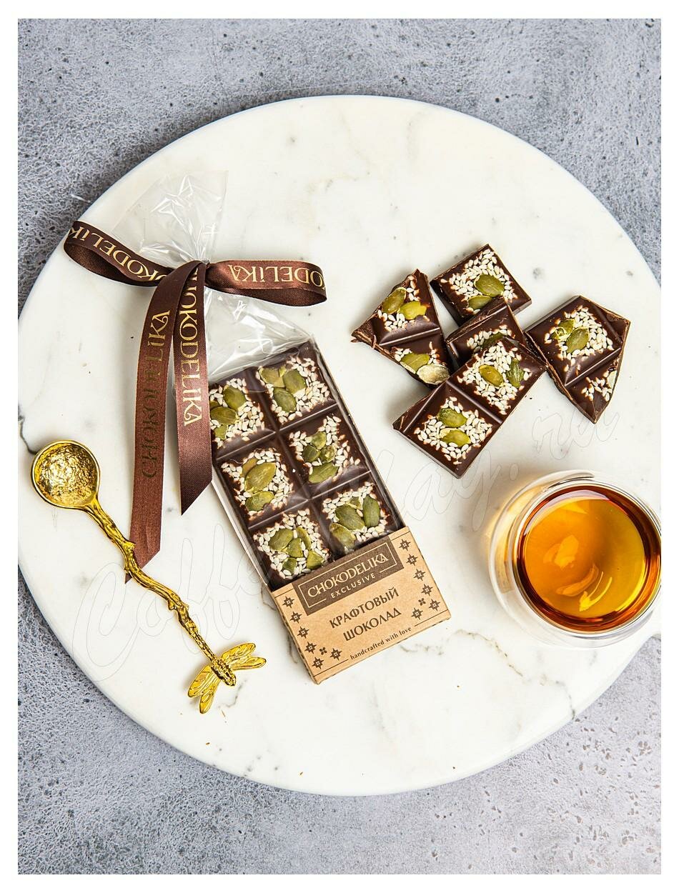 Сладости>Chokodelika>Chokodelika Шоколад темный "Крафтовый микс с кунжутом и тыквенными семечками" 50 г