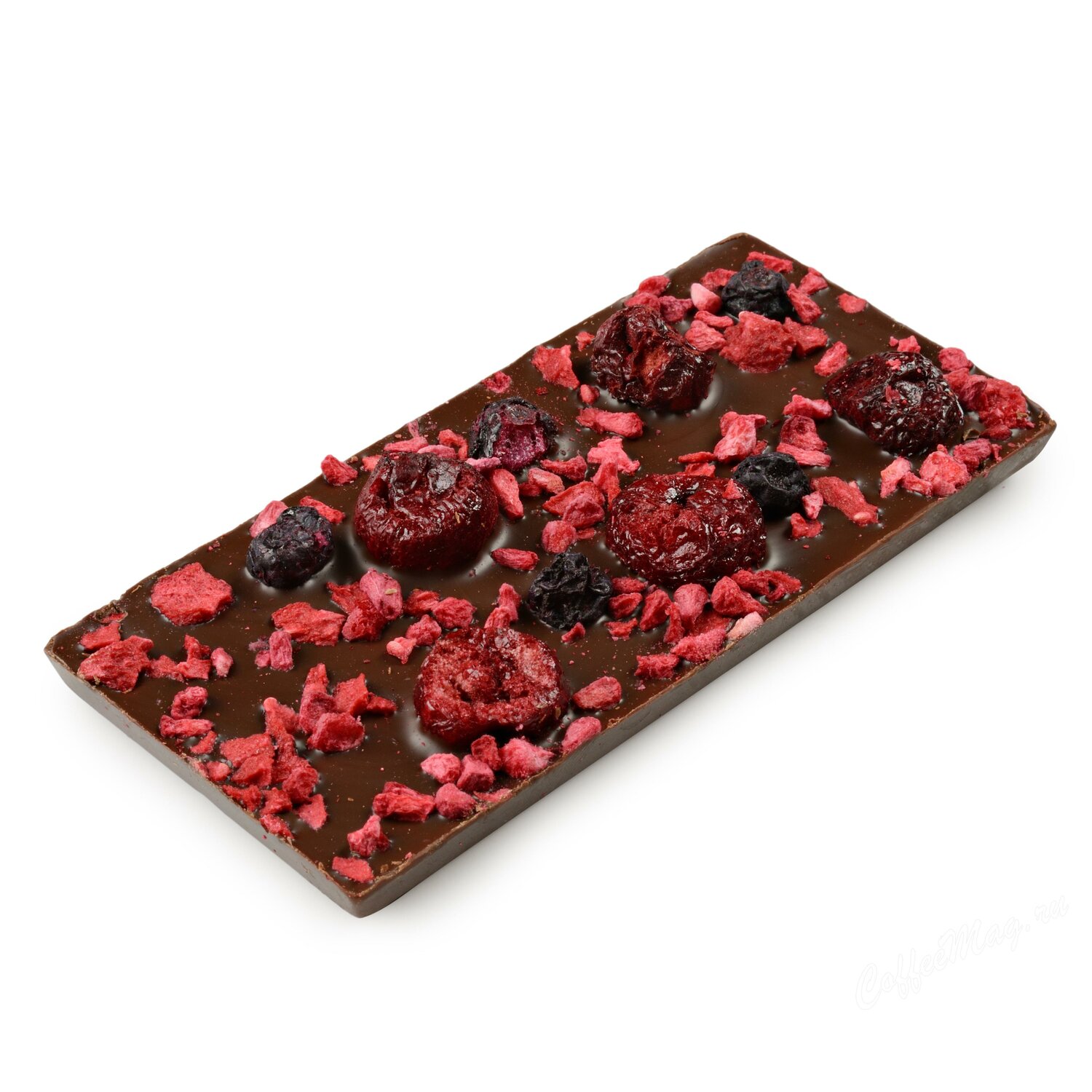 - Состав: темный шоколад (тертое какао, сахар, какао-масло, натуральный аромат ванили), сушеные ягоды вишни, малины, черники, сушеные кранчи «Малина» (малина, сахар, крахмал, сок малины концентрированный) и др.