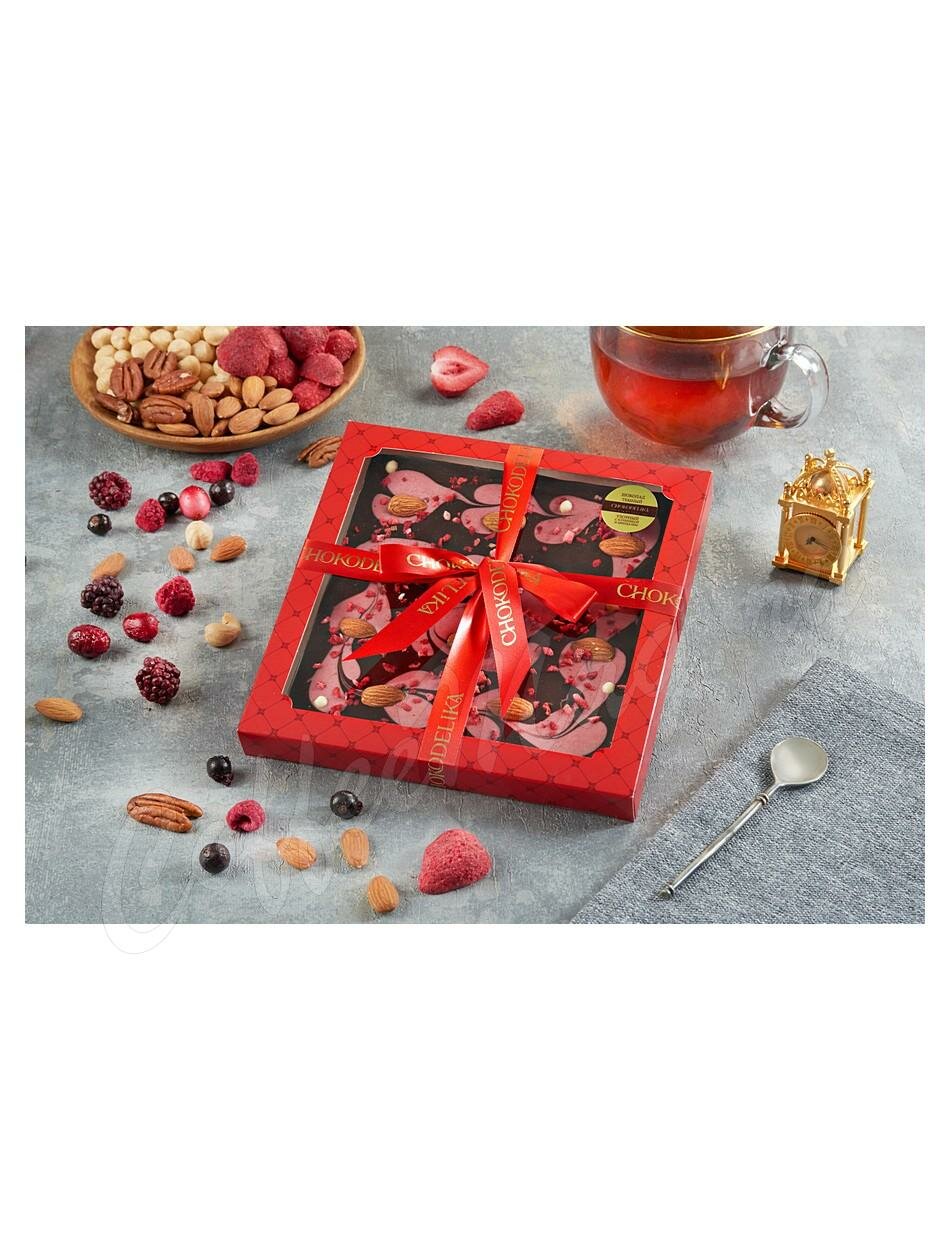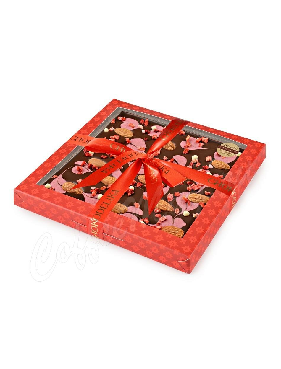 Chokodelika Шоколад темный "Узорный Клубника и миндаль" 200 г