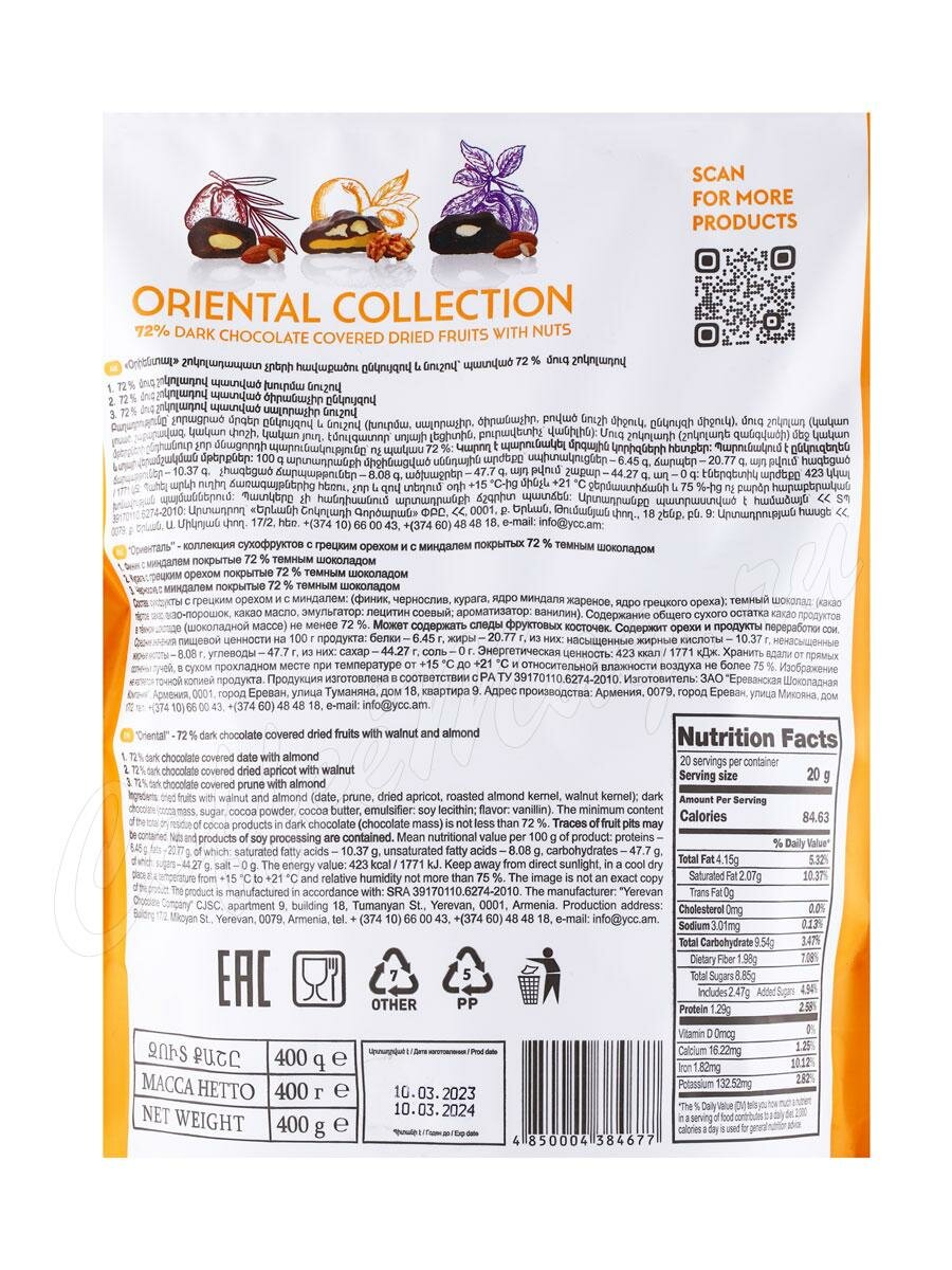 Конфеты Ассорти Mark Sevouni Oriental Collection сухофруктов с грецким орехом и миндалём в шоколаде 400 г