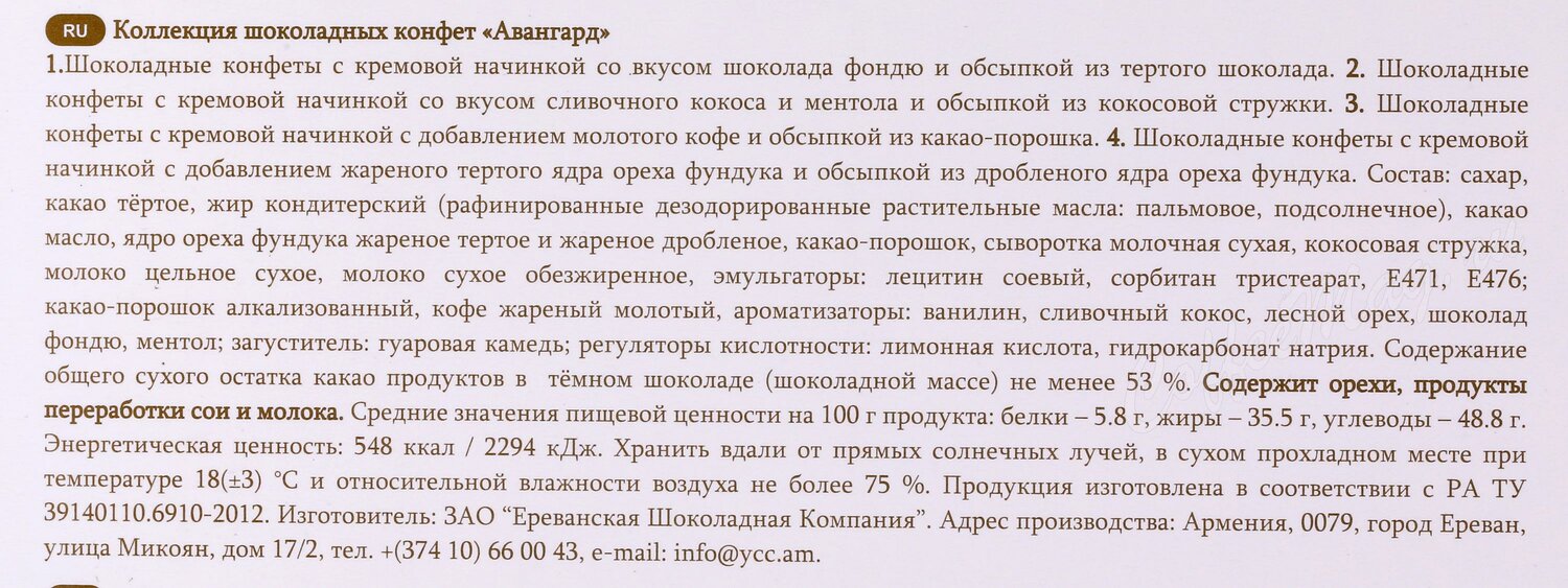 Конфеты Mark Sevouni Avantgard Chocolate Collection Авангард Шоколадная коллекция 280 г